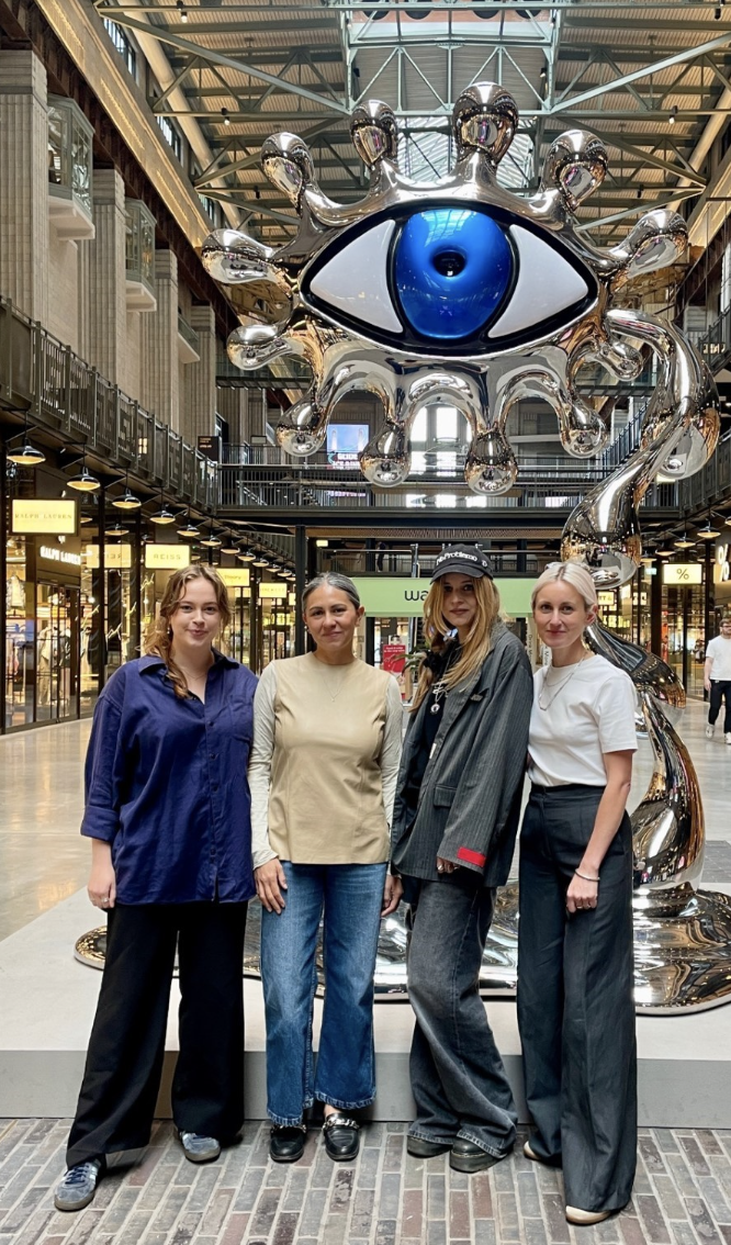 Rachael and Lorna with the artist Charlotte Colbert and Ava Kaartinen at Battersea Power Station, April 2025