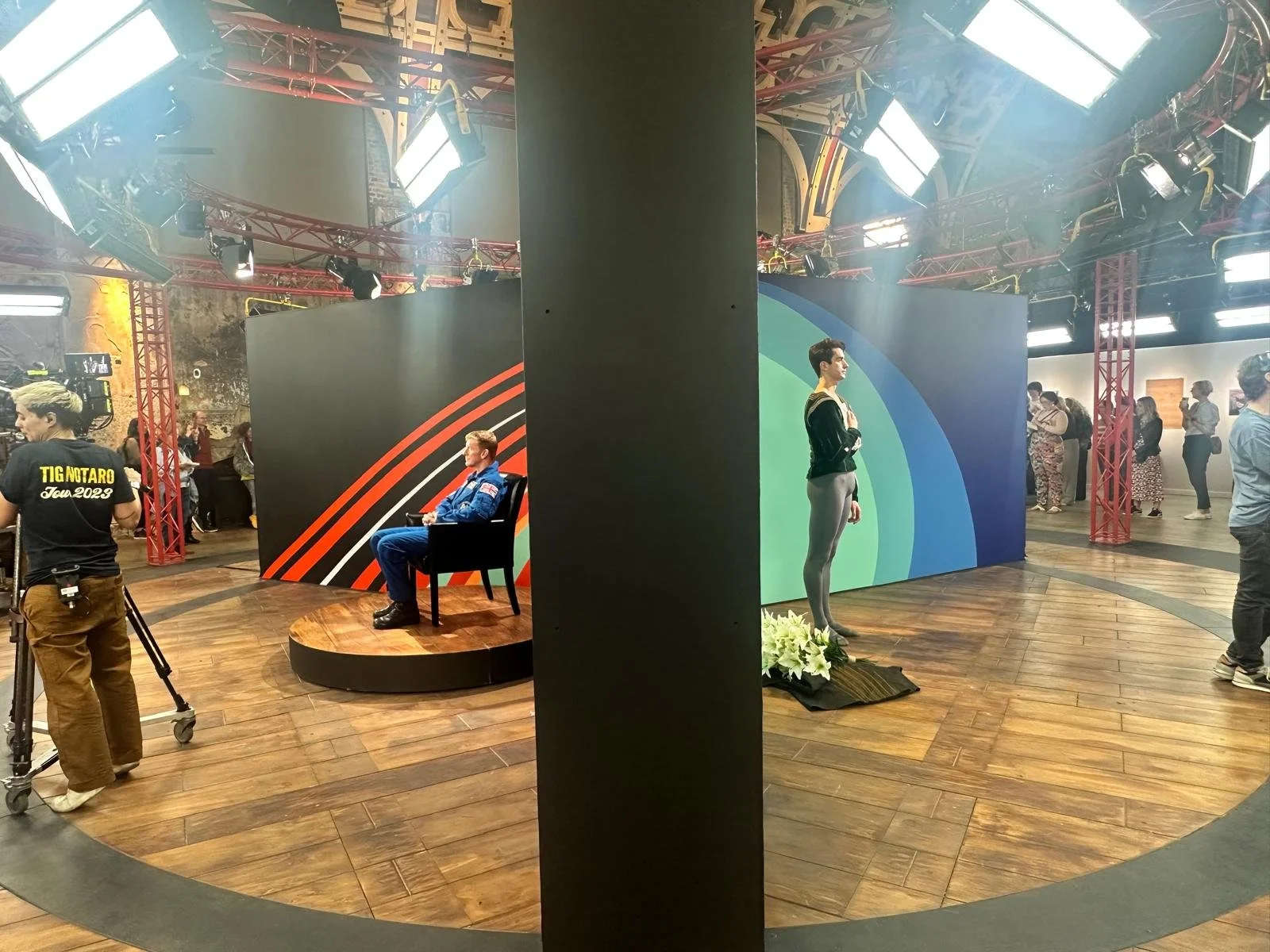 The way it works for the celebrity sitters is that they get a 10-15 minute comfort break after the first hour, then at the end of the second hour of the challenge, everyone breaks for an hour for lunch. After lunch, Stephen and the judges discuss the work so far then there's another comfort break for the sitters after the third hour and then it's the end of the competition after the fourth hour. During these breaks and in the morning, each artist is taken outside of the hall to be filmed with their self portrait in a stylised way that we call the ‘hero shots’. It can be annoying getting pulled away to do these but they're important as they are used at the top of the programme in the montage that introduces the heat artists plus they're used again when introducing each artist during the body of the show. A little tangent, any artists who have been on the show will hear crew refer to 'cheeses' - I can reveal that that is the term that we use to refer to the three sections where each celebrity sitter sits and three artists are based for the day. The nickname is because they're like wedges of a wheel of cheese.