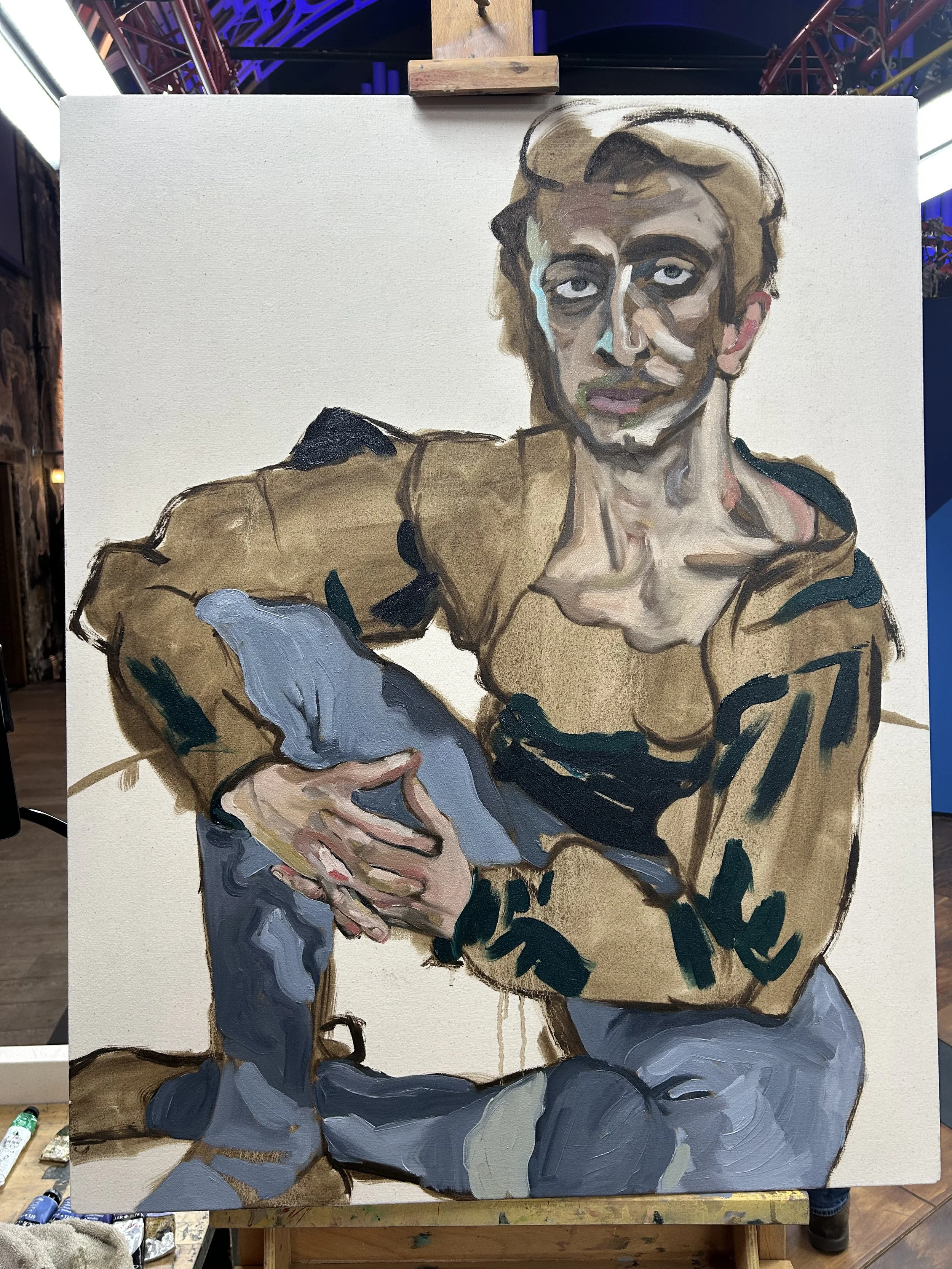 During the final heat this year we had a fantastic sitter, Reece Clarke, a principal dancer at the Royal Ballet who chose to stand for the four hour challenge. This was an editorial gift but then once the challenge started, word got amongst the production crew and judges that an artist had taken matters into her own hands and had asked Reece to pose for her on the floor! This in itself got a buzz going and then when everyone went over to see her work, we were all amazed by her abstract figurative style and that artist was of course you, Courtney. It was so refreshing to watch something different and risky but accomplished that seemed to achieve that illusive thing that the judges are always talking about - capturing the essence of a sitter. I had a word with my team who were producing in your “cheese” and I was told that you were a dream contributor, providing excellent, energy rich soundbites which always makes our job in the edit easy! Obviously it was lovely to see that the judges agreed with us lay people and they then chose you to go through to the semi-final.
