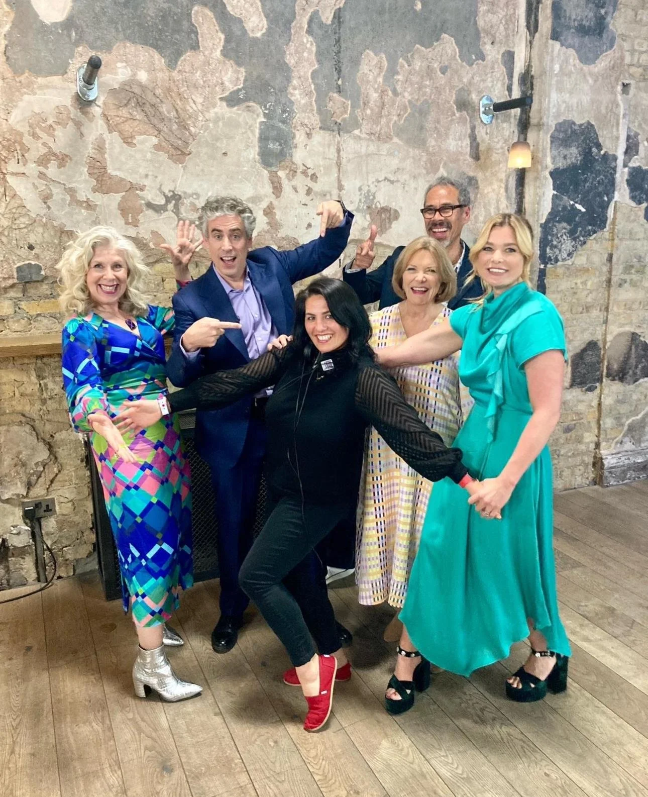 Kathleen Soriano, Stephen Mangan, Tai Shan Schierenberg, Joan Bakewell, Kate Bryan, and Nelda Sale on set at Battersea Arts Centre